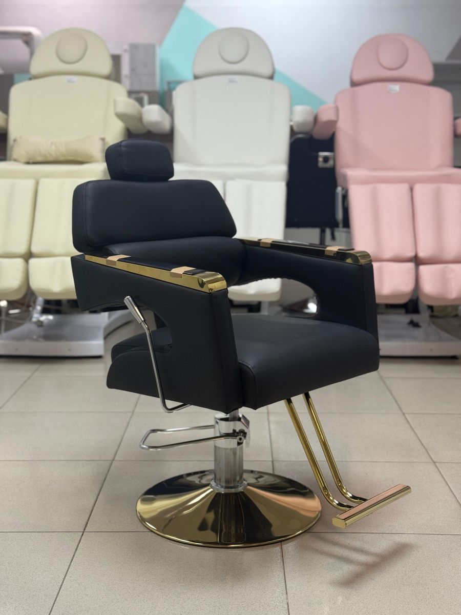 Стильное и обтекаемое, как мощный автомобиль, с хромированными подлокотниками и формованной спинкой.