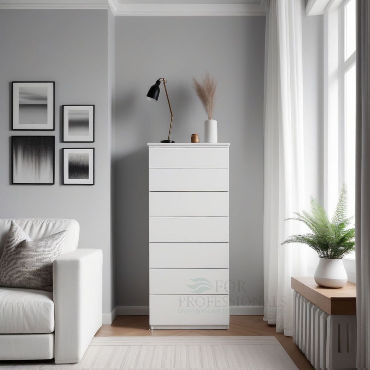Комод идеально подойдет для хранения одежды, постельного белья, книг, документов и других вещей, благодаря большой вместительности ящиков. А его высота позволит эффективно использовать вертикальное пространство в вашем помещении, будь то комната, кабинет или салон красоты.