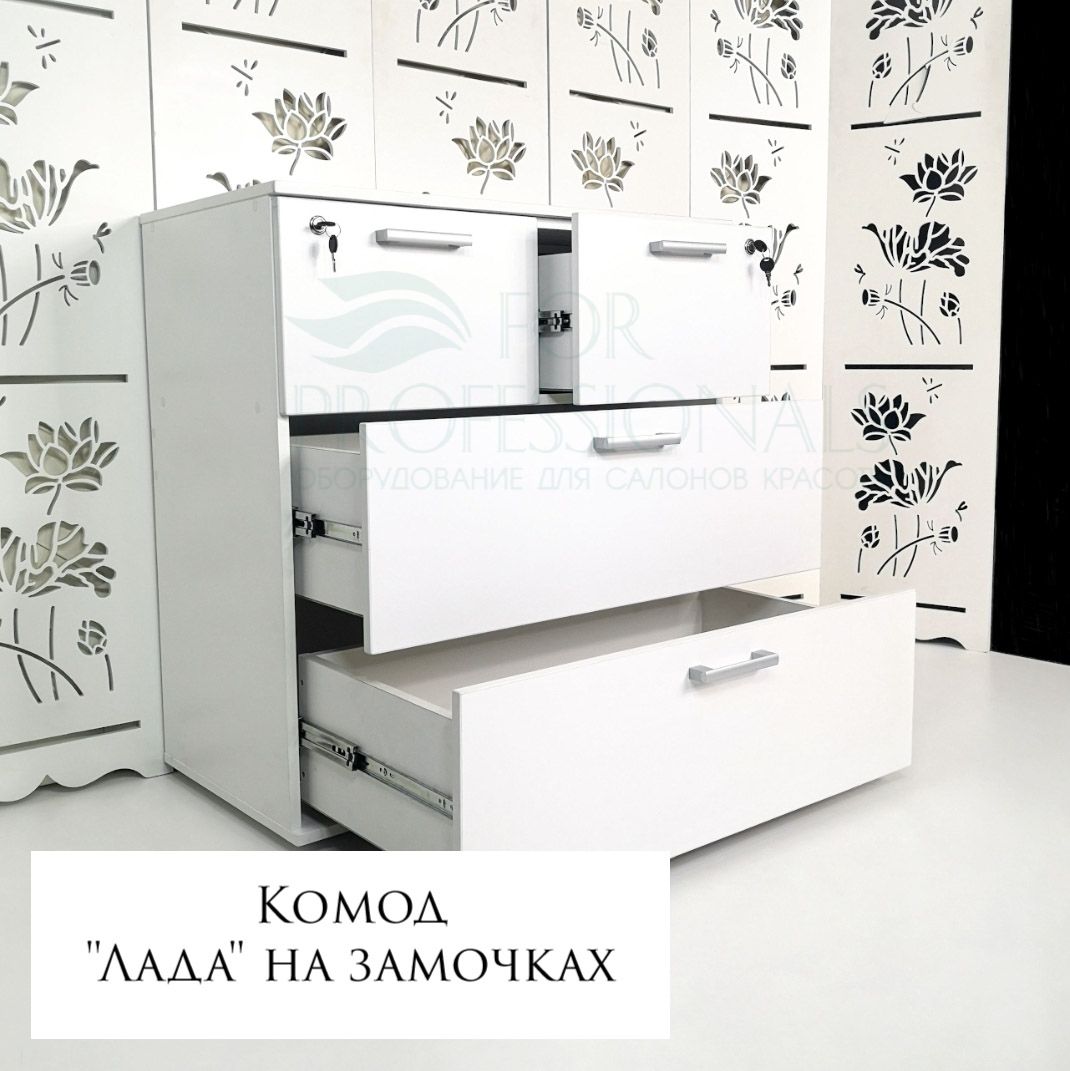 Читать все статьиКомод «Лада» с замочками Белый Глянец