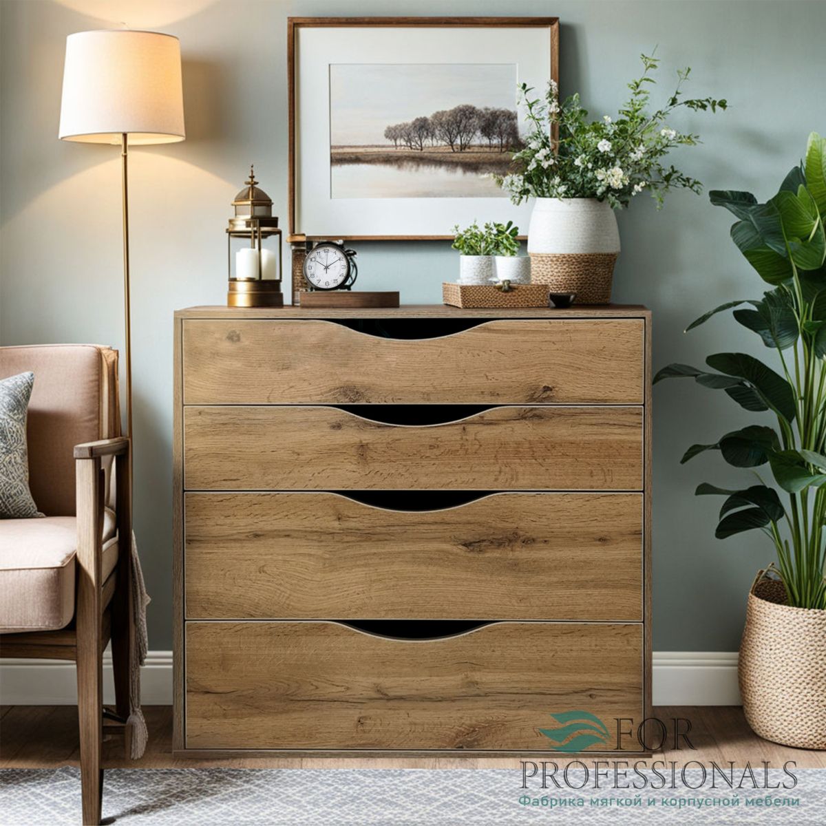 Древесные оттенки создают пространство комфорта и уюта, а 4 глубоких вместительных ящика станут отличным местом для хранения вещей.