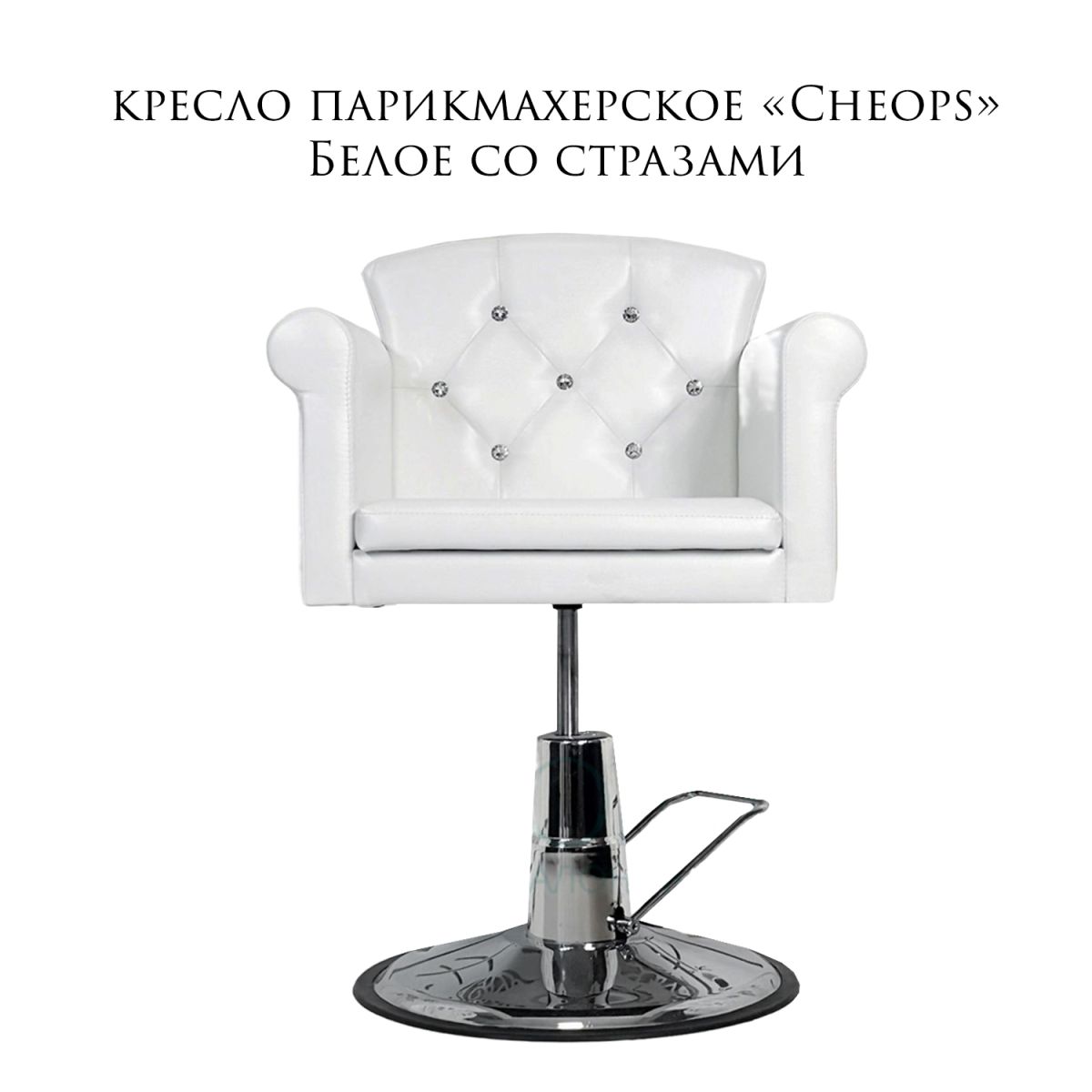 Читать все статьиКресло парикмахерское «Cheops» белый глянец со стразами (на барберском штоке)