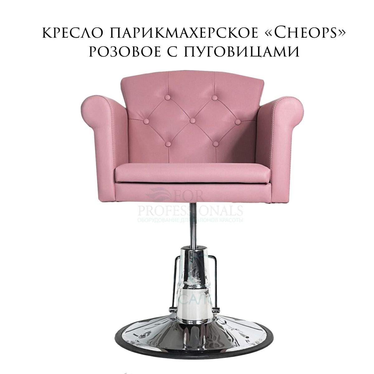 Читать все статьиКресло парикмахерское «Cheops» розовый с пуговицами (на барберском штоке)