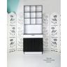 Компактный, но вместительный шкафчик приятной цветовой комбинации, девять открытых полочек-ячеек, выкатной ящик и полочки за дверцами!