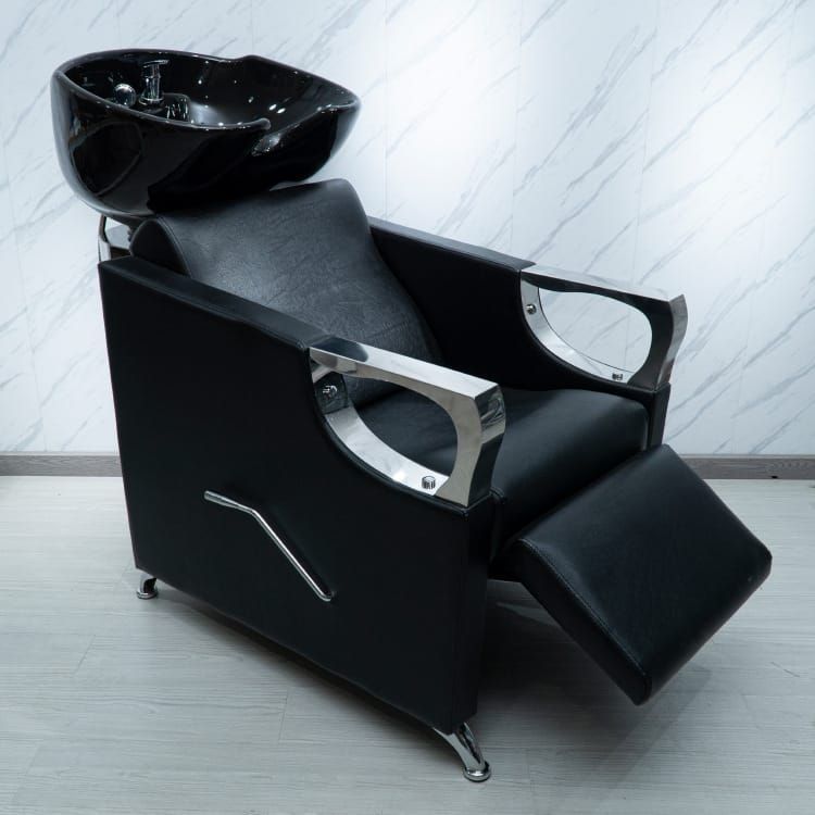 Такая мойка - это обязательный атрибут в любом салоне красоты или парикмахерской. Для подведения труб с горячей и холодной водой предусмотрено специальное отверстие под откидной подушкой спинки кресла, и с задней стороны мойки.