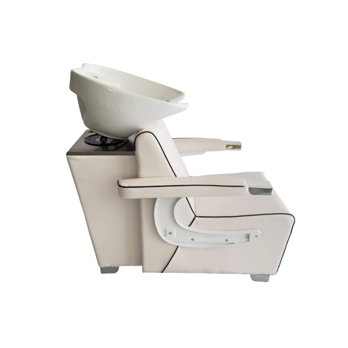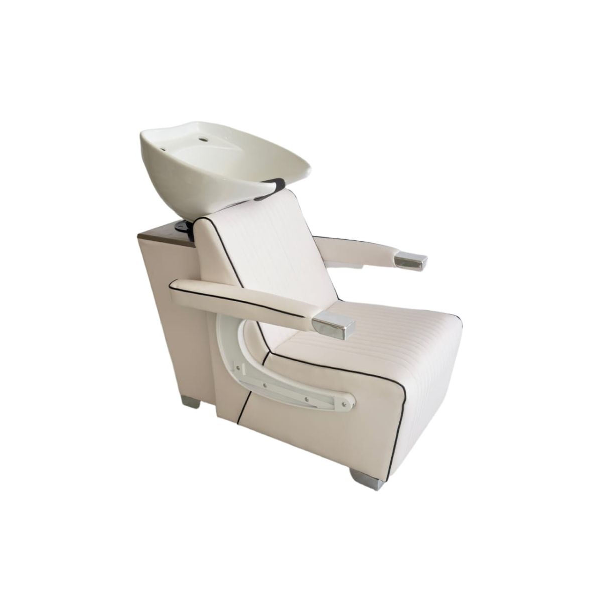 Механизм регулировки наклона раковины позволяет настроить оптимальный угол для комфорта клиента. У сиденья мягкие подлокотники с хромированными элементами. Это мойка - идеальное решение для салонов, стремящихся предоставить своим клиентам максимальный комфорт.