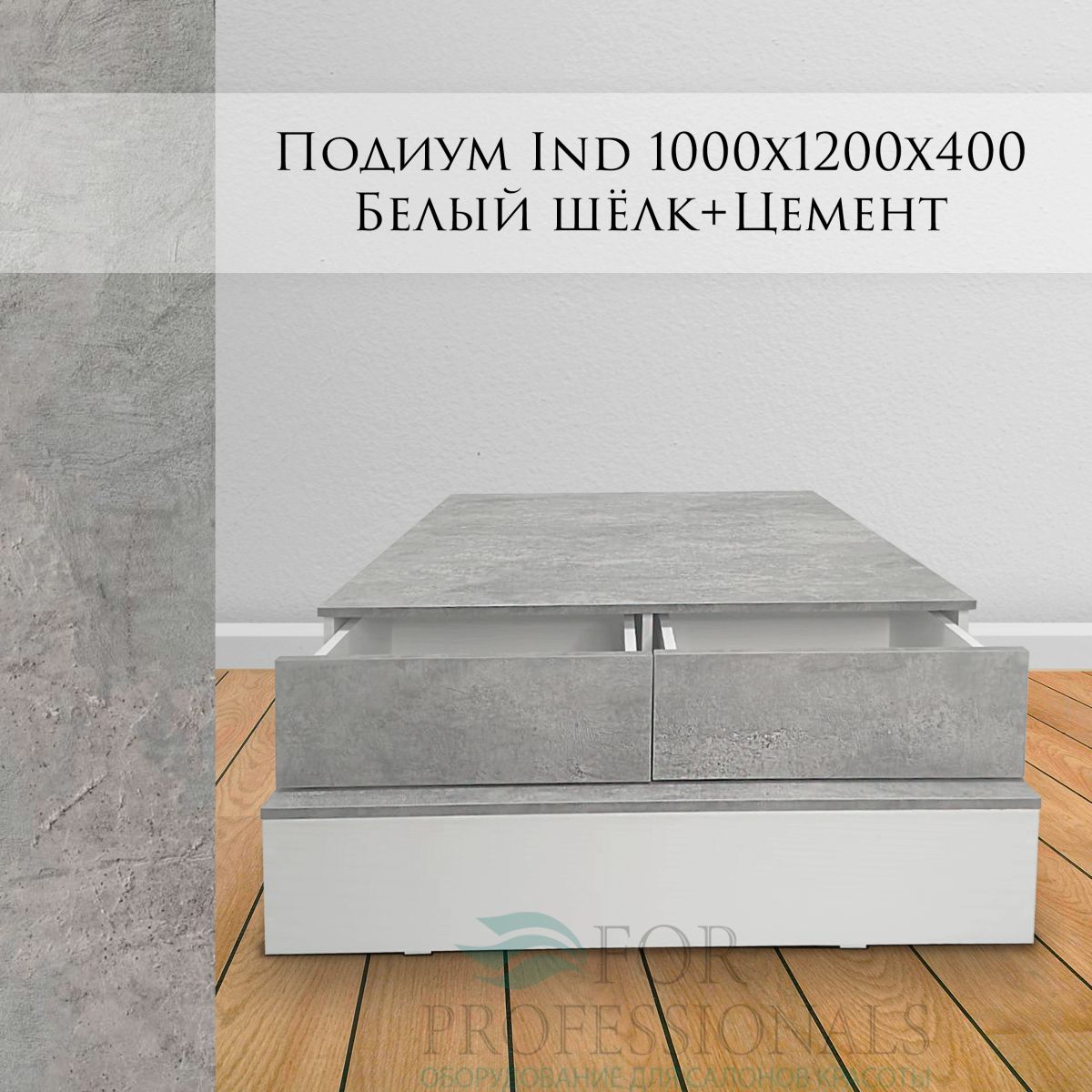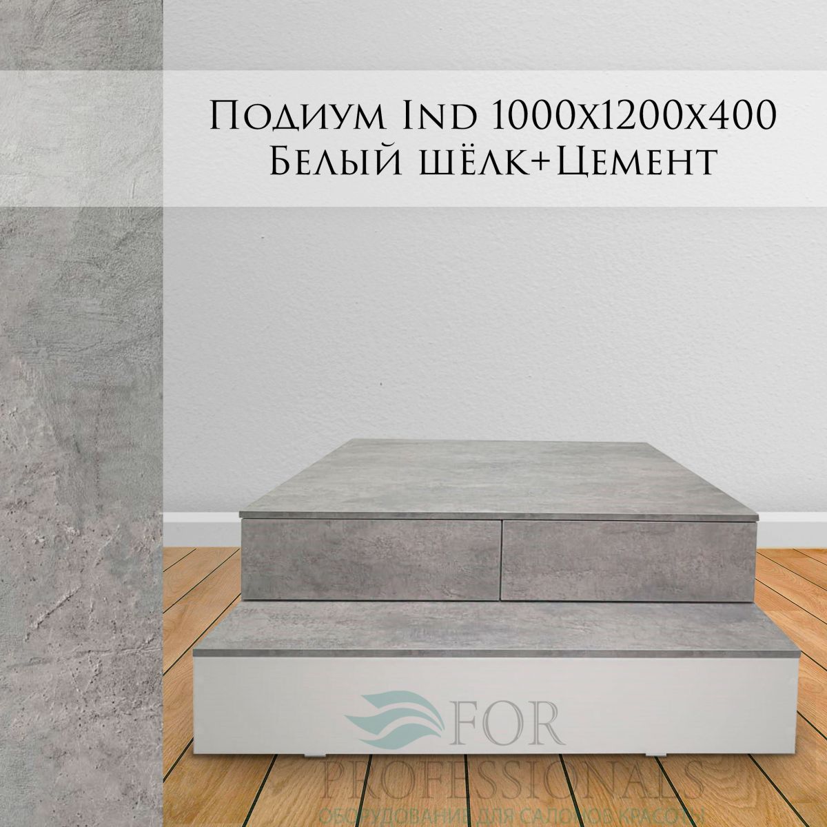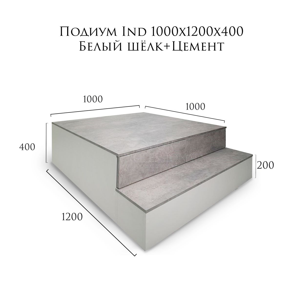 Подиум индивидуальный 1000х1200х400 Белый шёлк + Цемент