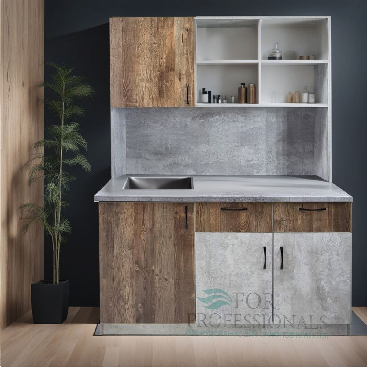 Шкаф оснащен специальной раковиной для мытья рук, что обеспечивает максимальный комфорт и гигиеничность во время работы, а 4 открытых полки позволяют разместить все необходимое под рукой!