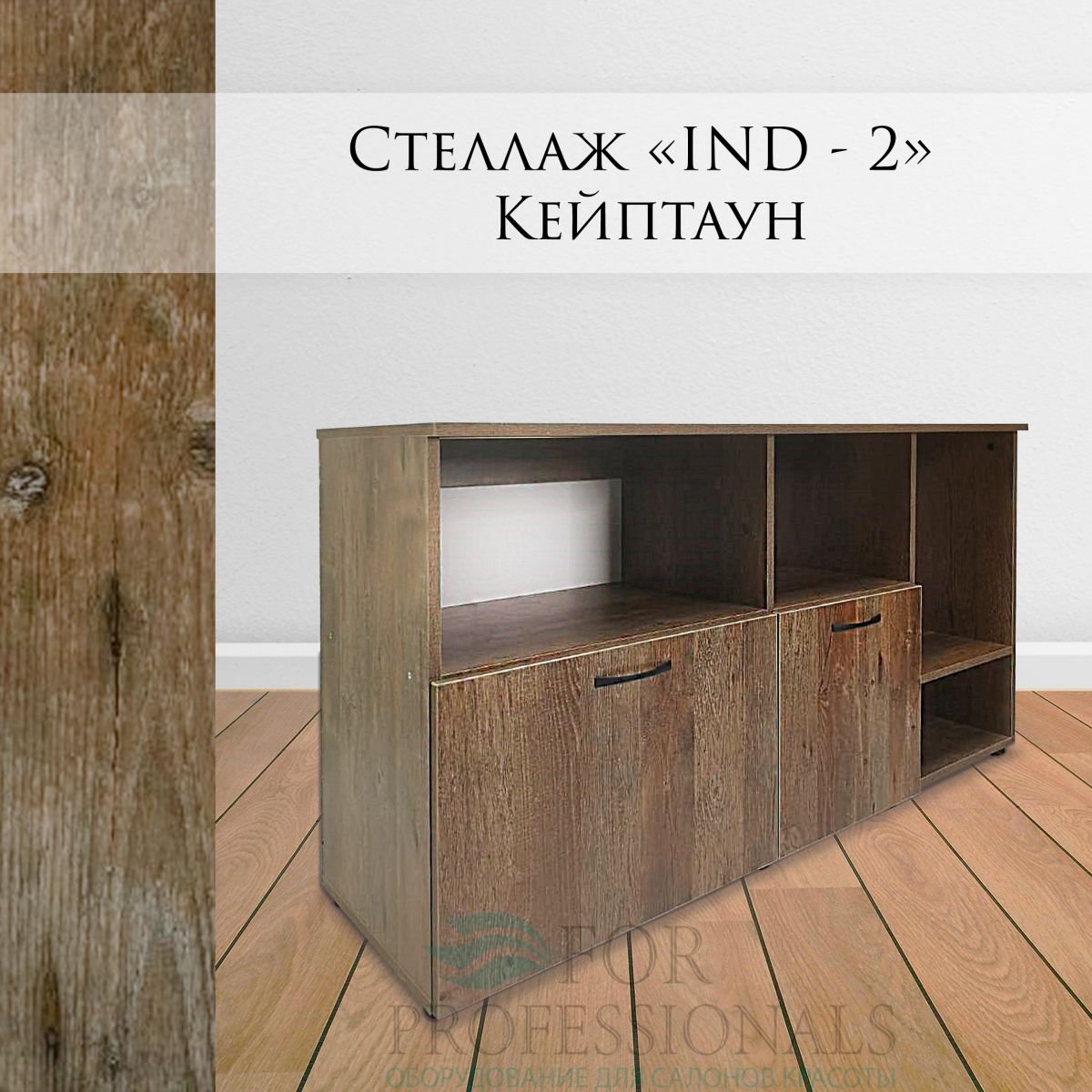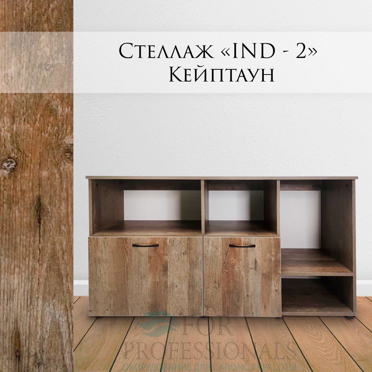 Стеллажи – очень вместительная конструкция, а ещё они могут быть выполнены в самом разнообразном дизайне. Так наша модель стеллажа «IND - 2» включает в себя как открытые, так и закрытые полки. Необычен и размер мебели – в высоту стеллаж всего 697 мм, поэтому в интерьере он с лёгкостью выполнит роль тумбы.