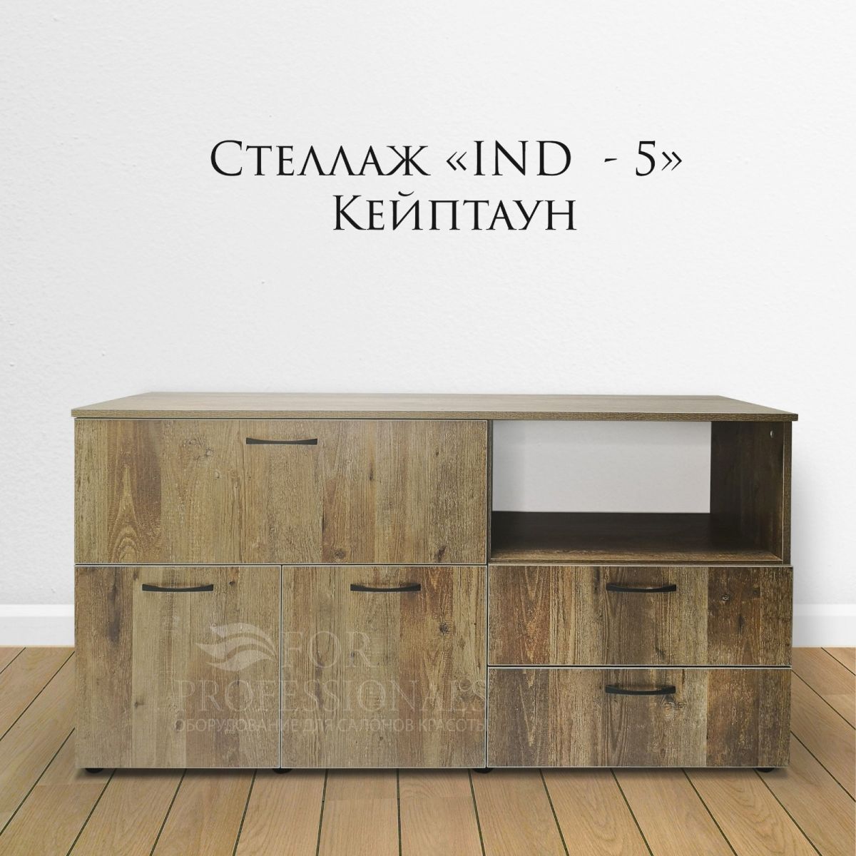 Что случится, если обыкновенный стеллаж превратить в дизайнерский элемент помещения, оставив ему положенный функционал быть вместительным и практичным? Получится наша модель «IND - 5». У него только одна открытая полочка, все остальные – закрываются, позволяя хранить вещи, которые боятся света. Ещё одной особенностью стеллажа является наличие трёх ящиков – одного большого и двух поменьше.
