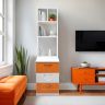 Представляем вам стеллаж в цвете «Белый шёлк + манго»! Этот высокий стеллаж с вертикальной системой хранения станет прекрасным дополнением к вашему интерьеру.