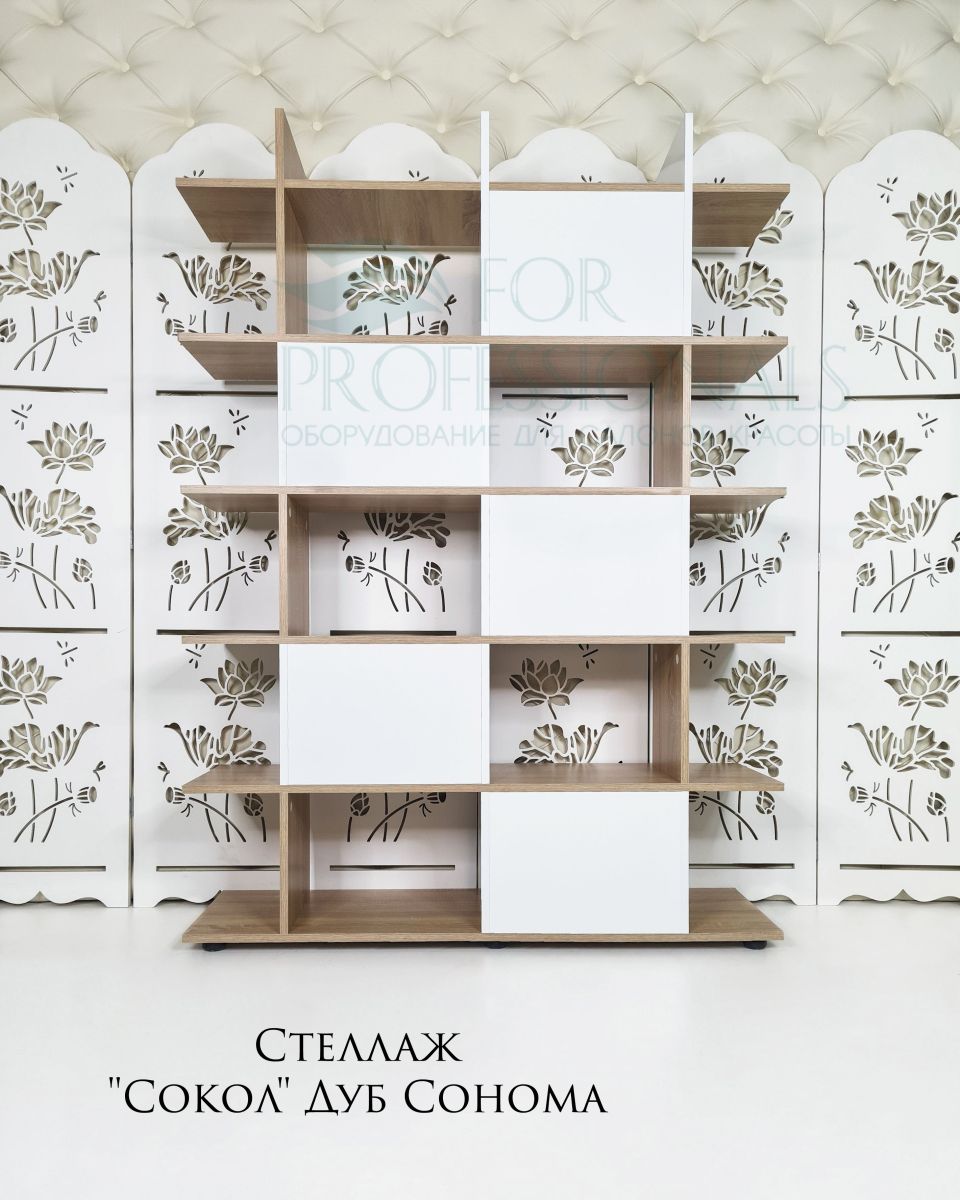 Особенно хорошо, когда стеллаж так стильно выглядит: открытые полочки, удобное расположение поверхностей, приятное сочетание тёплого древесного и белого цветов.