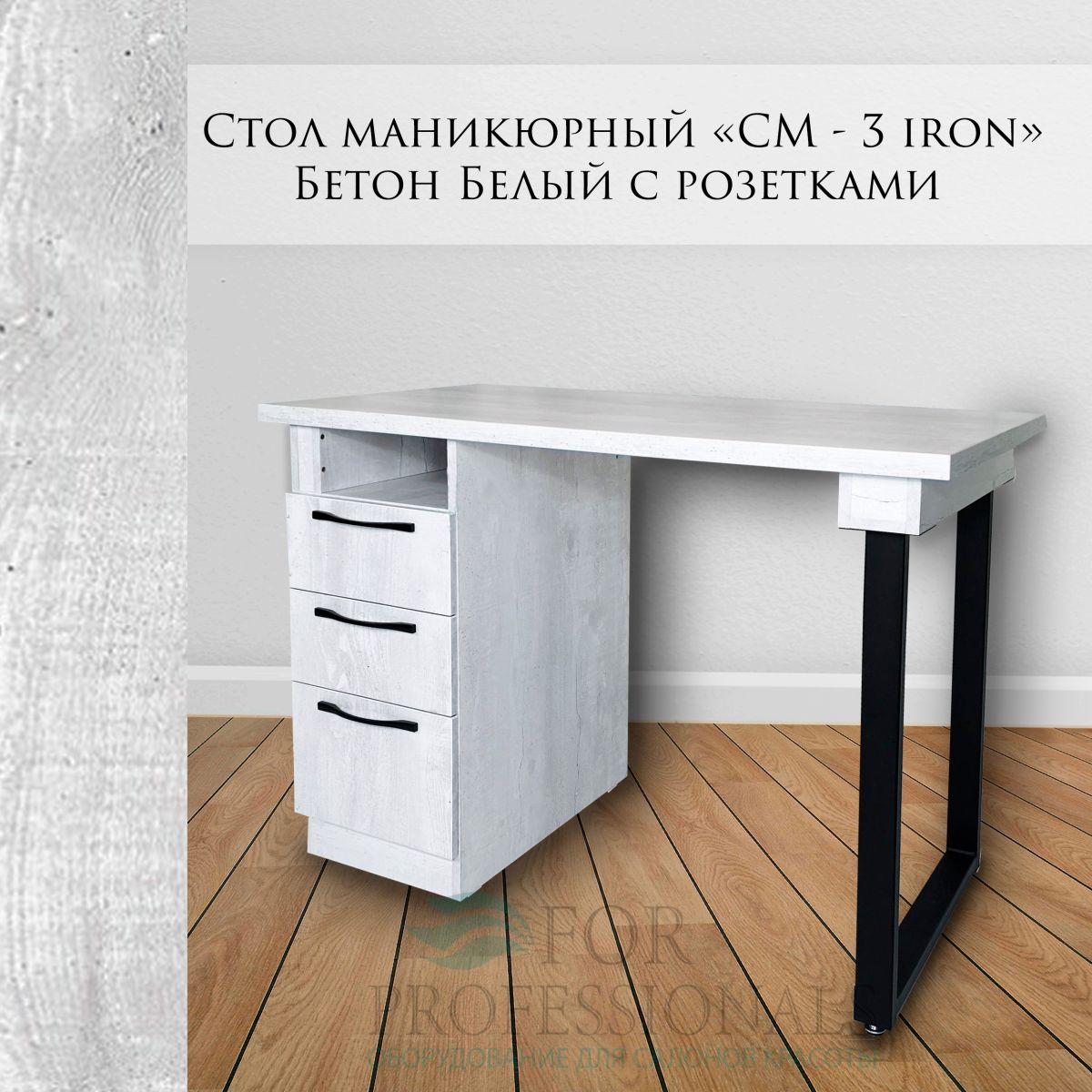 Читать все статьиСтол маникюрный «СМ - 3 IRON» 11100х600х832 Бетон Белый с розетками