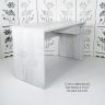 Длинная столешница, две крепкие ножки, но кроме того практичный выкатной ящичек. Просто и со вкусом, а самое главное - удобно и красиво.