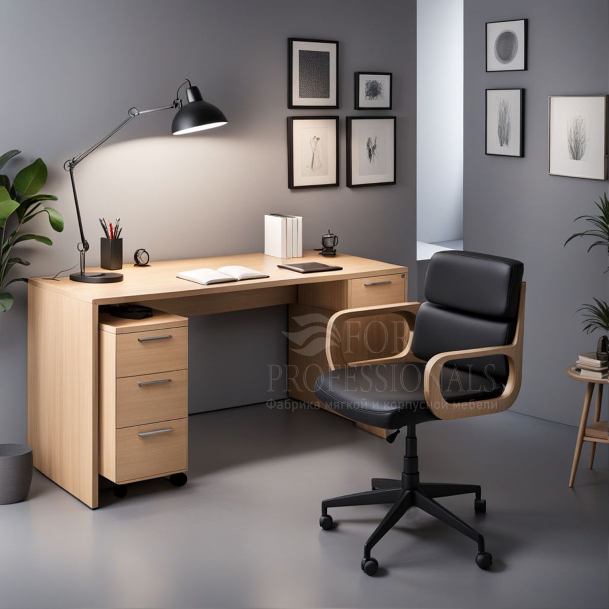 Ищете стильный и удобный офисный стол с тумбой? Представляем вам нашу модель «Reference plus» в цвете светлого дерева!
