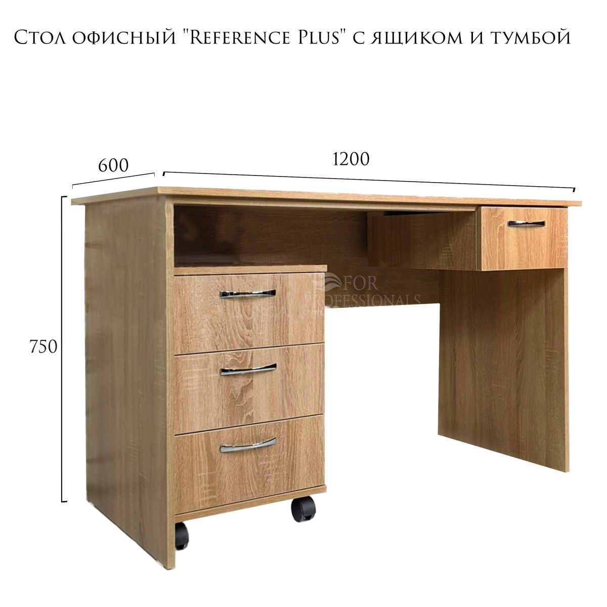 Читать все статьиСтол офисный «Reference Plus» с ящиком и тумбой Дуб Сонома