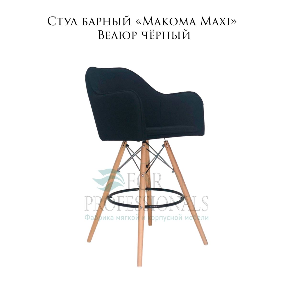 Читать все статьиСтул барный «Makoma Maxi» Велюр чрный на деревянных ножках