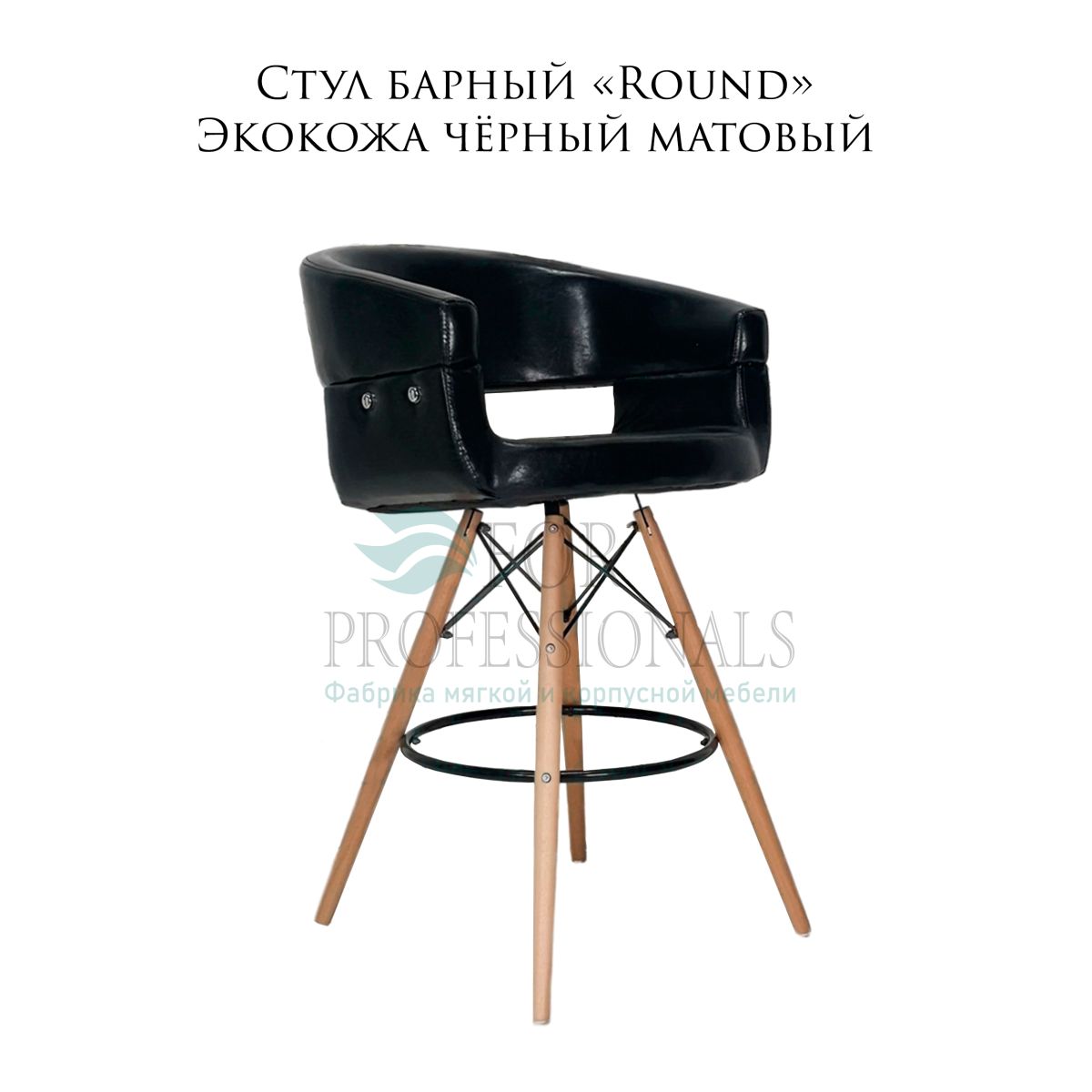 Читать все статьиСтул барный «Round» экокожа чёрный матовая на деревянных ножках