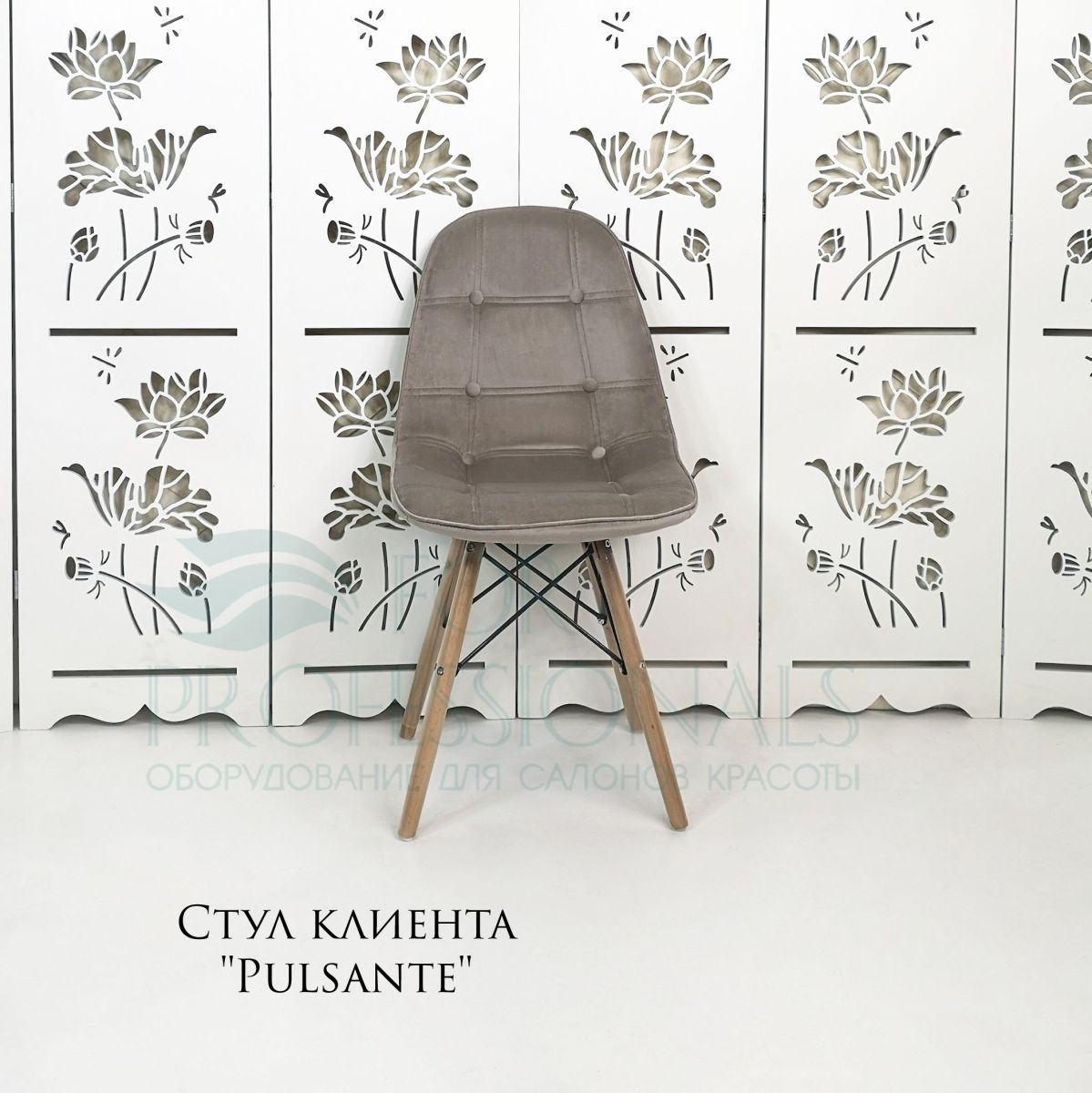 Читать все статьиСтул клиента «Pulsante» велюр бежевый на деревянных ножках