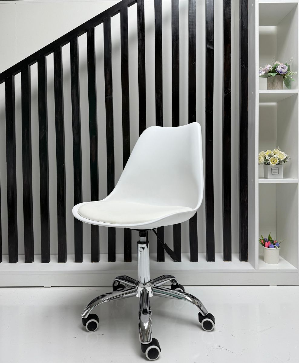 Читать все статьиСтул мастера «Eames Soft» экокожа белый на хромированном пятилучье