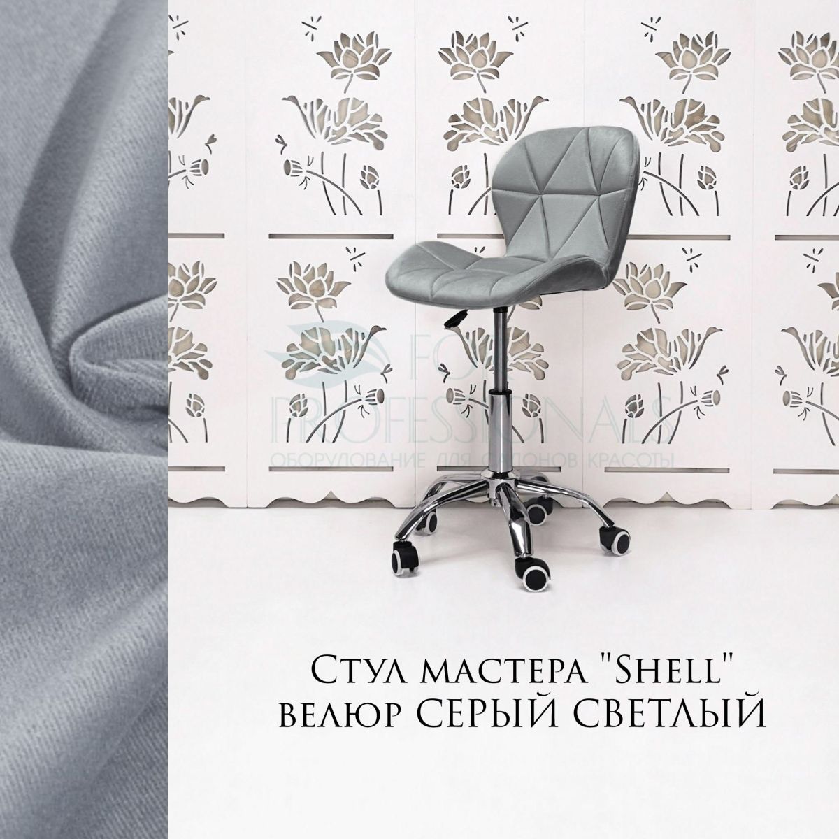 Читать все статьиСтул мастера «Shell» велюр светло-серый на хромовом пятилучьи