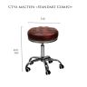 Стул мастера «Standart Comfo» на хромированном пятилучье гарантирует удобство и комфорт во время работы. Высота стула регулируется, позволяя подобрать оптимальную, в зависимости от индивидуальных предпочтений, или необходимости. Упругое сиденье поворачивается, что позволяет быстро менять положение во время работы, а хромированное пятилучье обеспечивает стабильность и прочность конструкции. Кроме того, стул легко мыть и перемещать по салону.