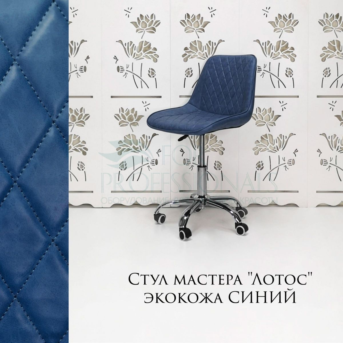 Читать все статьиСтул мастера «Лотос» экокожа синий на хромовом пятилучьи