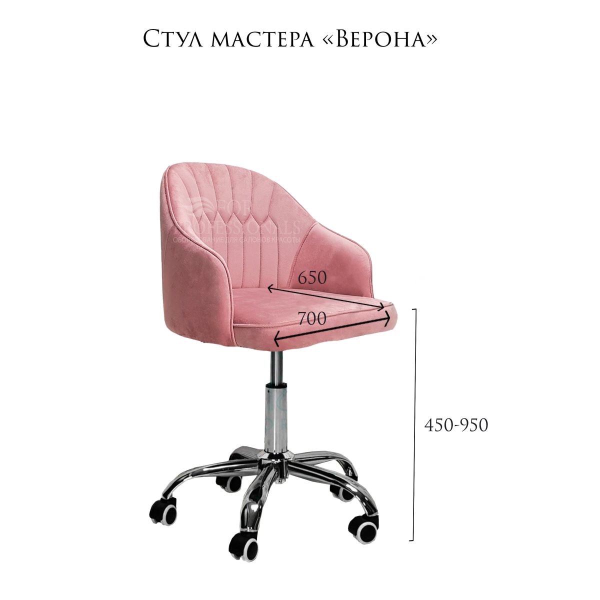 Наш стул «Верона» для мастера — это стильное и удобное решение для салона красоты. Регулируемое хромированное основание обеспечивает надежную поддержку спины при работе, а велюровая обивка тактильно приятна, поэтому наш стул сделает работу мастера более комфортной, а значит, эффективной.