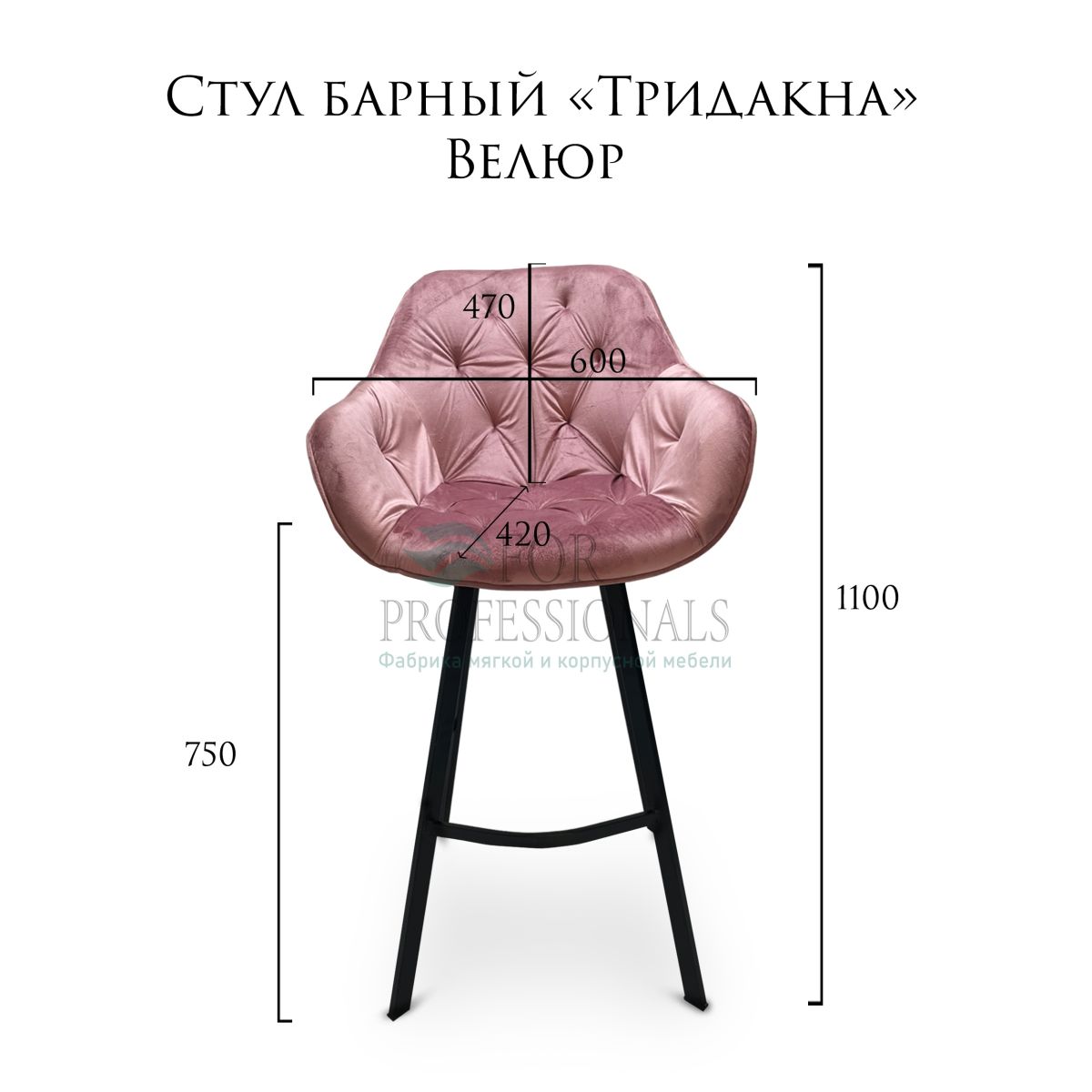 Стул барный "Тридакна" на металлических ножках, велюр: